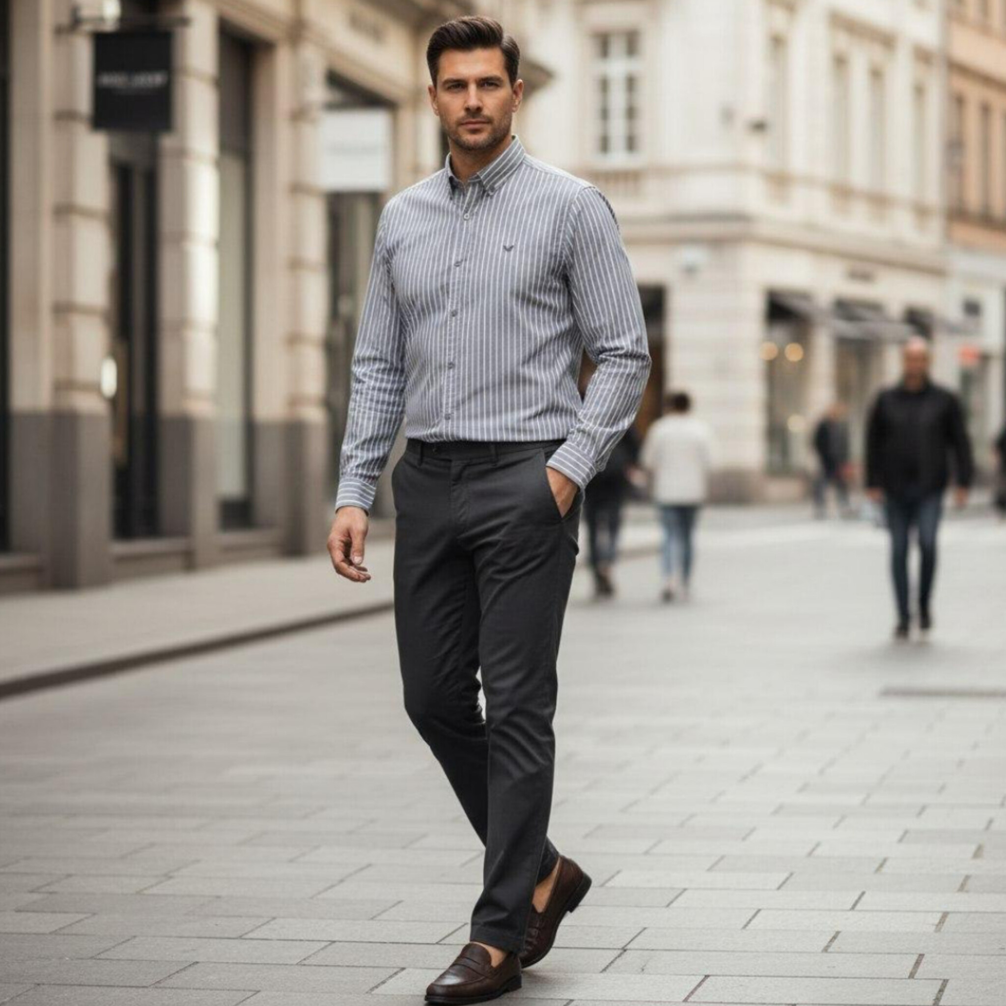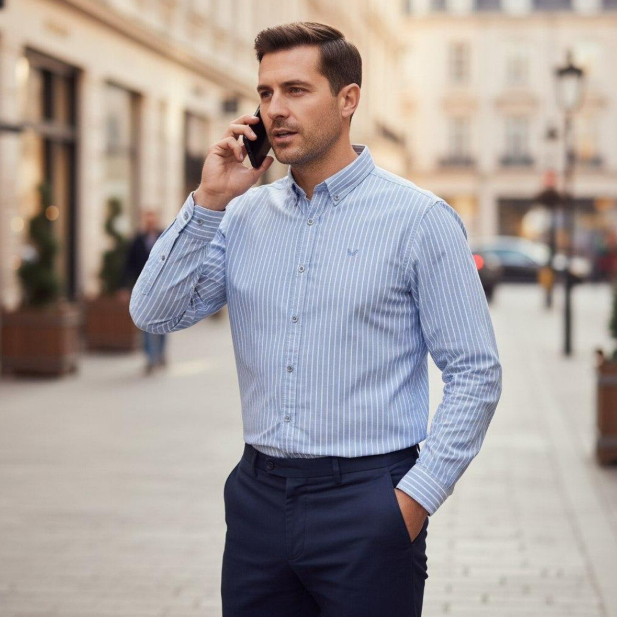 پیراهن طرح دیپلمات راه راه ریز در چند رنگ متنوع و زیبا دوخت صنعتی ازسایز XLتا4XL با کيفيت عالی اداری و مجلسی